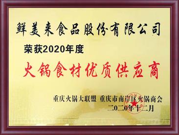 荣获2020年度火锅食材优质供应商 -