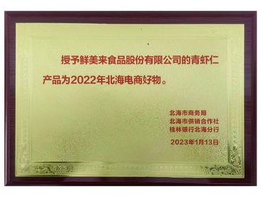 授予鲜美来青虾仁为2022年北海电商好物 -